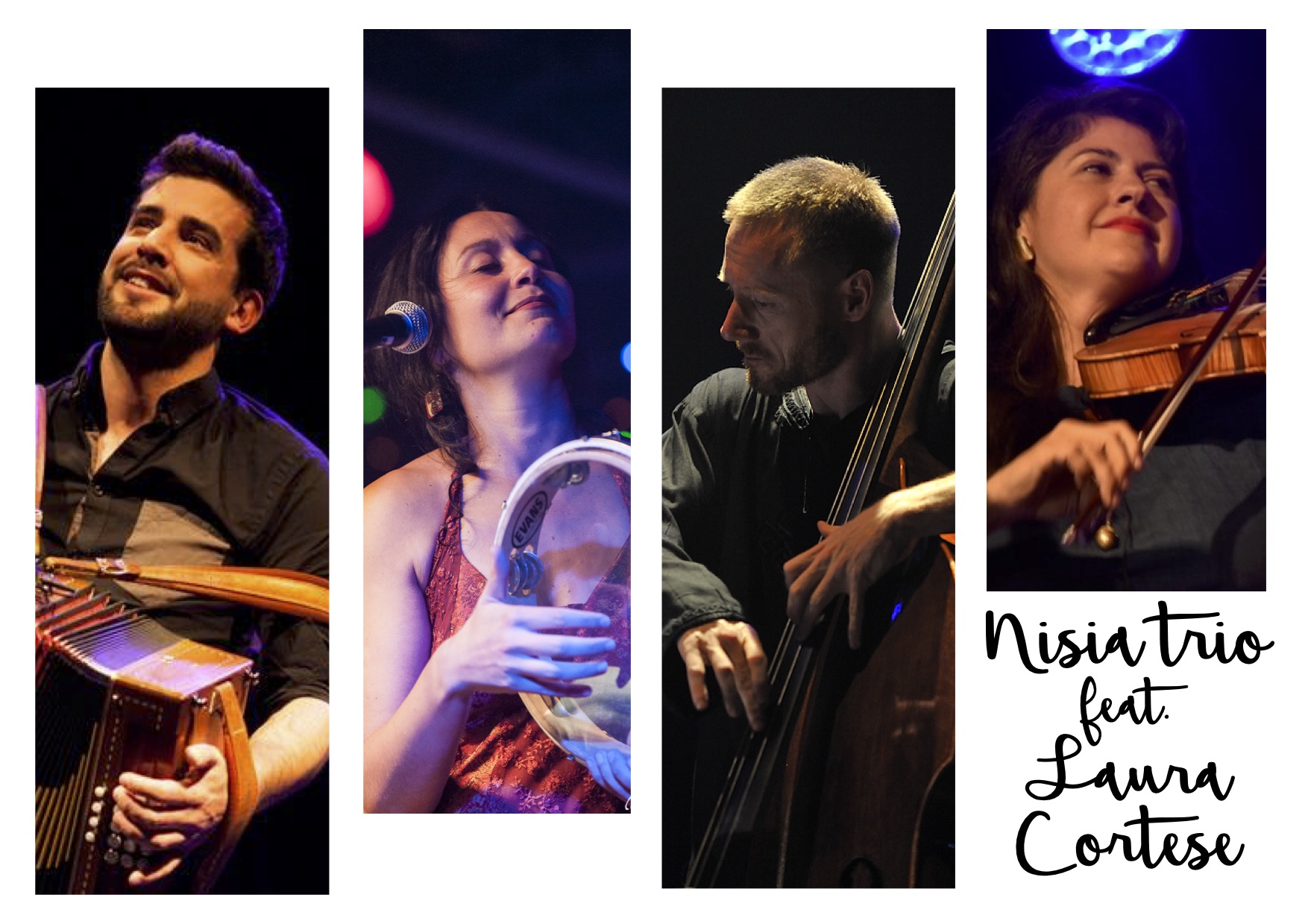Concert de musique live mêlant traditions du Sud de l'Italie et jazz/folk européen avec le Nisia trio et la violoniste Laura Cortese à Bruxelles.
