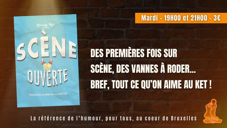 Soirée hebdomadaire de stand-up à Bruxelles où humoristes débutants ou confirmés testent leurs textes devant un public bienveillant dans un cadre convivial.