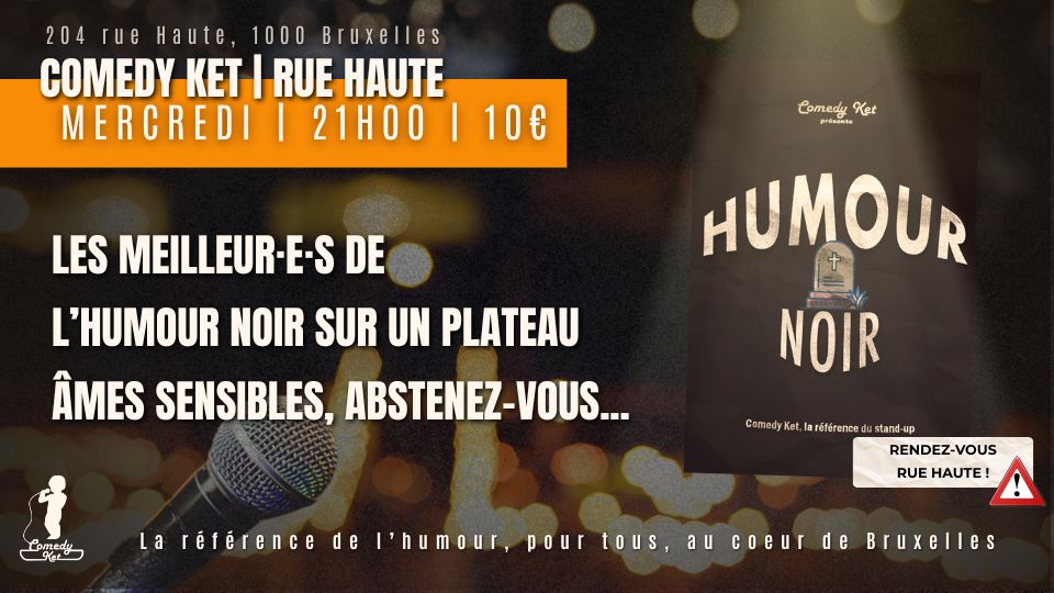 Soirée stand-up à Bruxelles avec des humoristes pratiquant l’humour noir, où les sujets tabous et un humour grinçant sont au centre du spectacle.