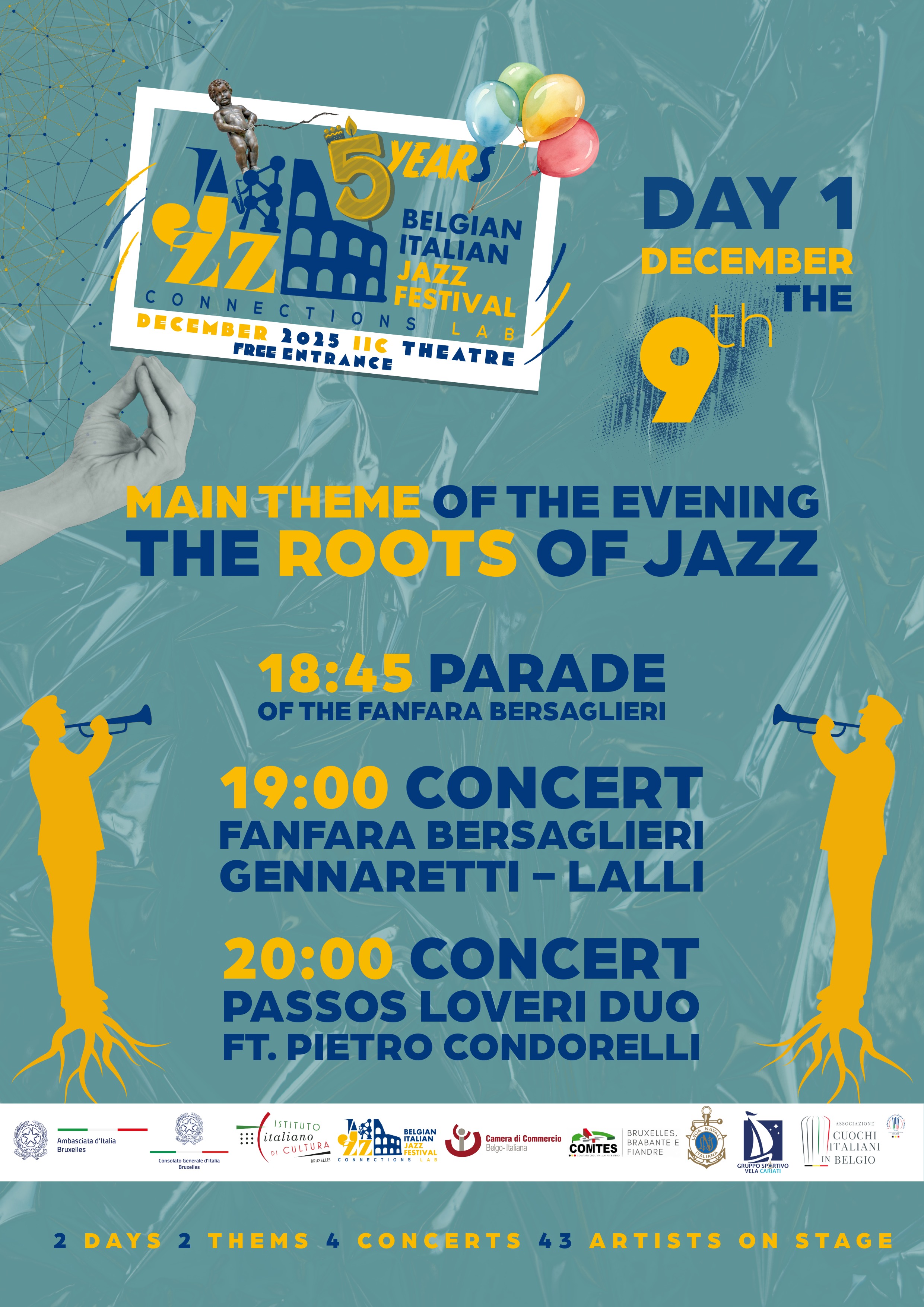 Festival de jazz à Bruxelles sur deux soirées, mêlant concerts, fanfare, projections et un concert immersif autour des racines du jazz et du thème de l'eau.