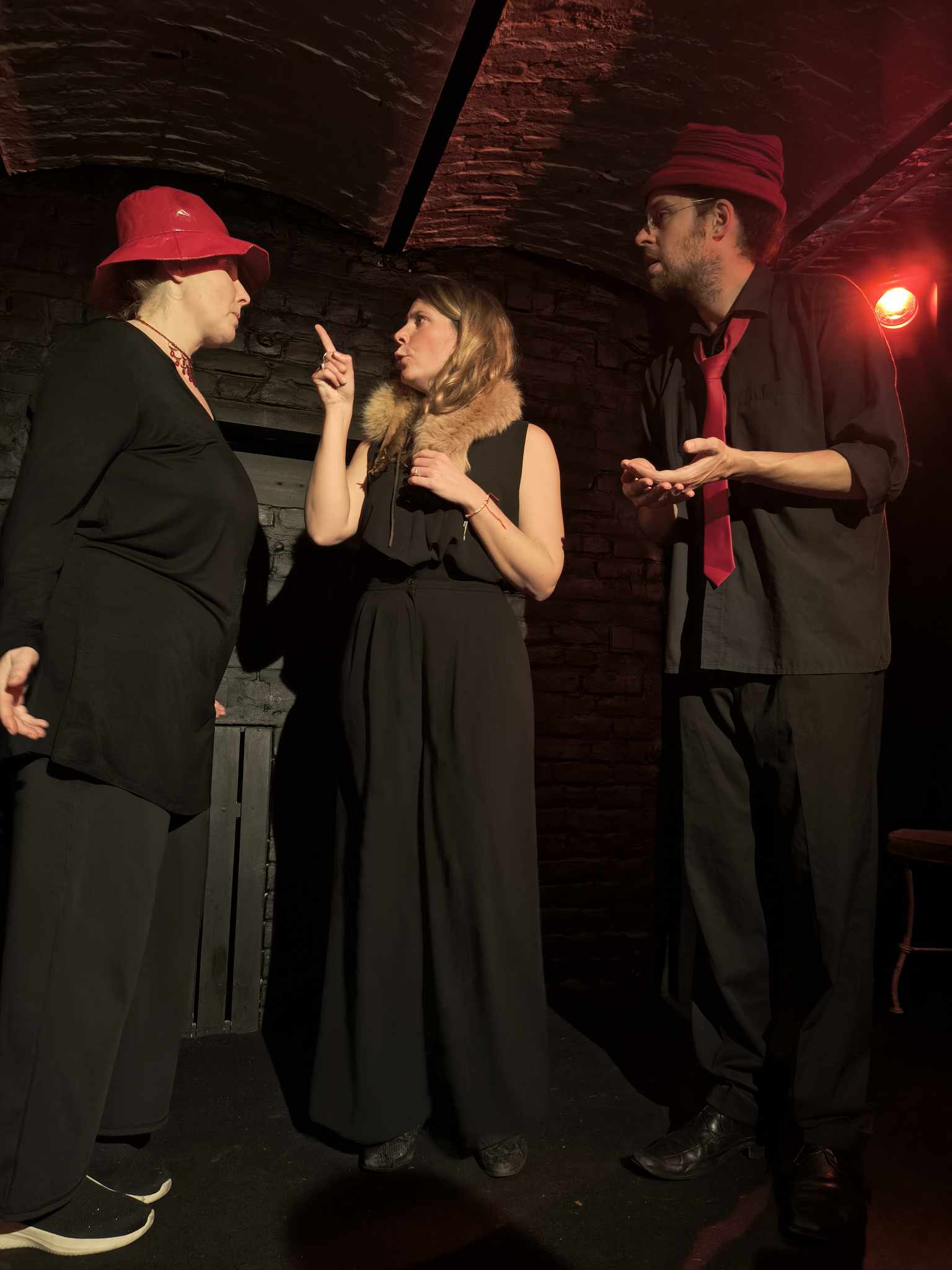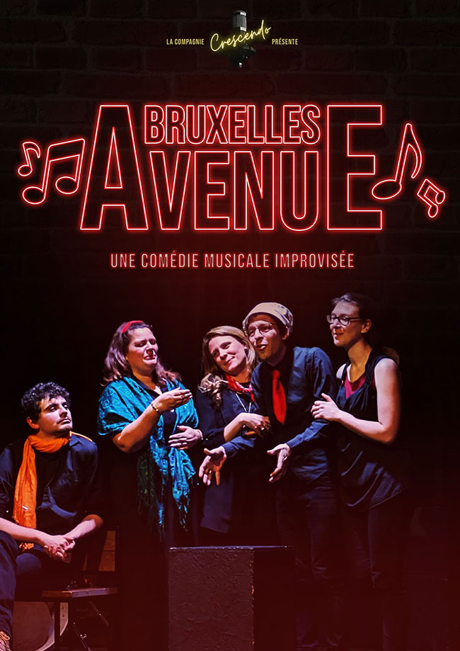 Spectacle de comédie musicale improvisée à Ixelles avec 4 comédiens et un musicien, mêlant chant, danse et théâtre pendant environ 1h15.