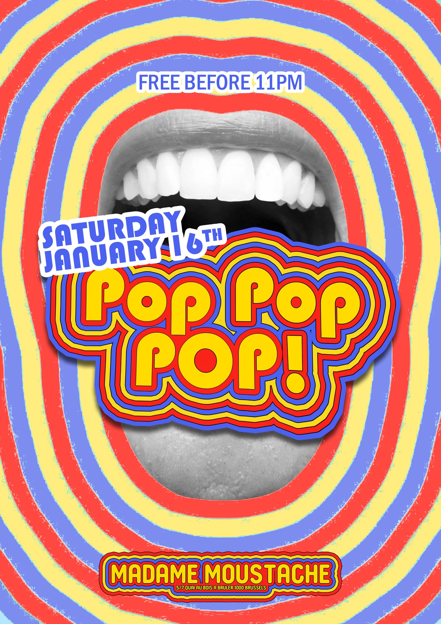 Soirée gratuite au club Madame Moustache à Bruxelles, avec une ambiance festive et musicale à partir de 22h. Événement ouvert au public adulte pour danser et socialiser.