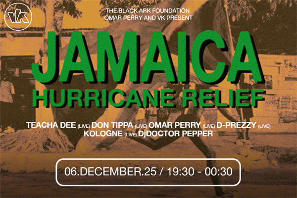 Soirée caritative organisée à VK - De Vaartkapoen à Molenbeek-Saint-Jean pour soutenir les victimes de l'ouragan en Jamaïque. L'événement se déroule en soirée avec une ambiance conviviale.