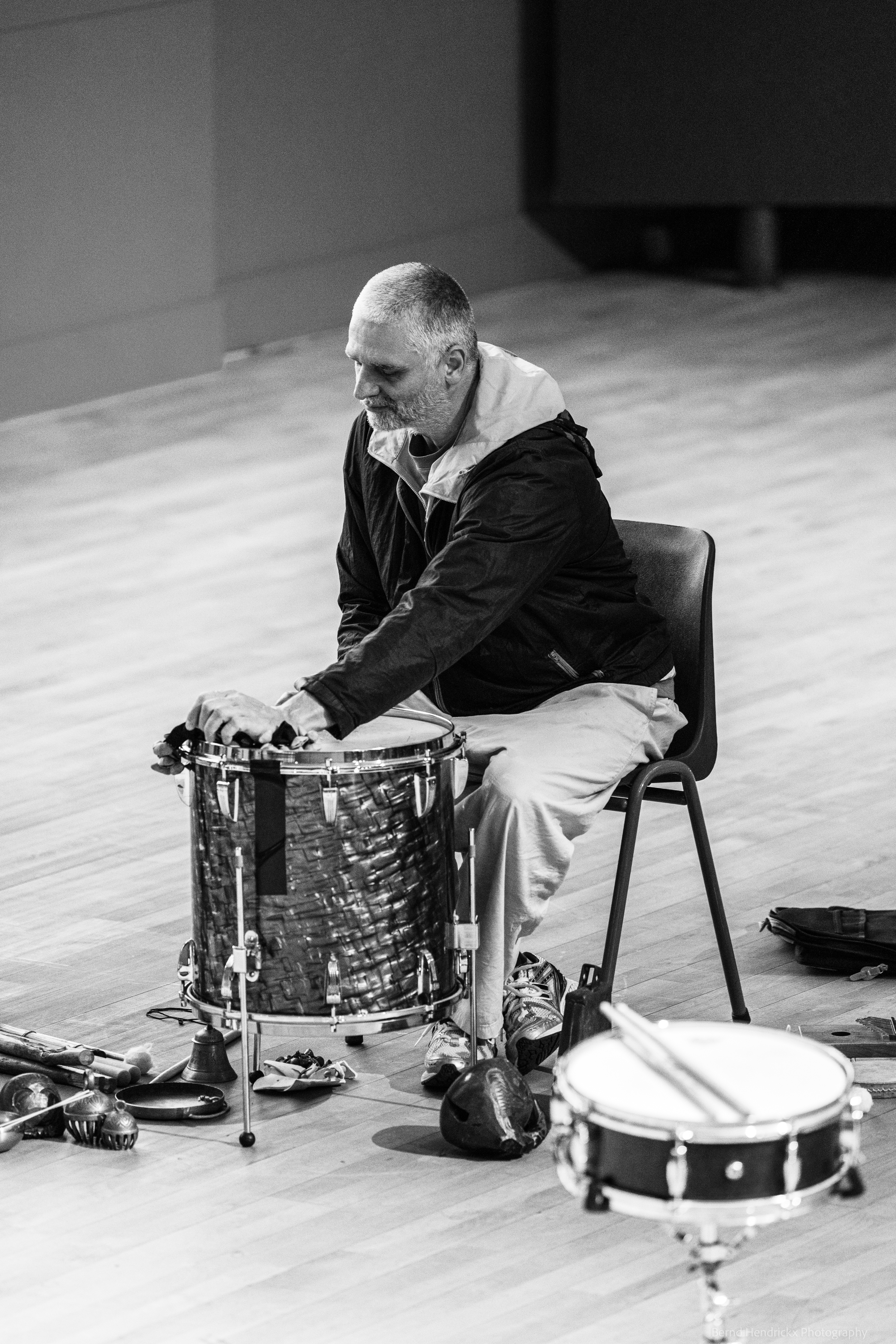 Soirée d’improvisation musicale avec Eric Thielemans et Hanne De Backer à Anderlecht, mêlant saxophone baryton, percussions et exploration sonore en solo et en groupe.